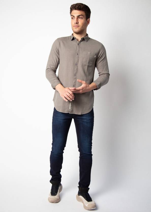 Nostrum Men Solid Casual Grey Shirt