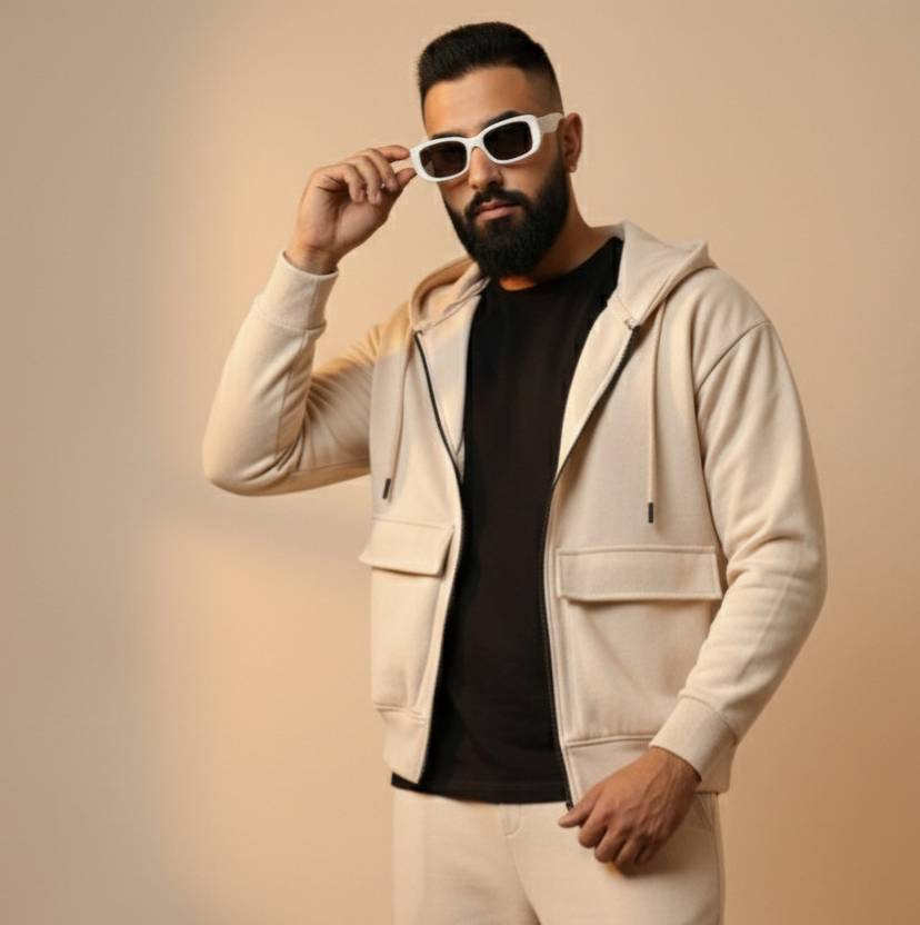 The off white color delivers a fresh, minimal look that pairs effortlessly with dark denim, cargos, or joggers, making this hoodie a versatile choice for casual wear, travel, and winter street styling.