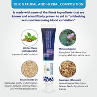 Sporting a range of health benefits, this cream improves blood flow, strengthens veins, reduces swelling and itching, and helps the skin regain its natural colour. The improved blood flow ensures that your skin receives adequate nutrients, leading to a healthier appearance. Strengthening veins helps in maintaining skin integrity, while the reduction of swelling and itching provides relief from discomfort. Regular use aids in restoring the skin's natural colour, promoting an even tone.