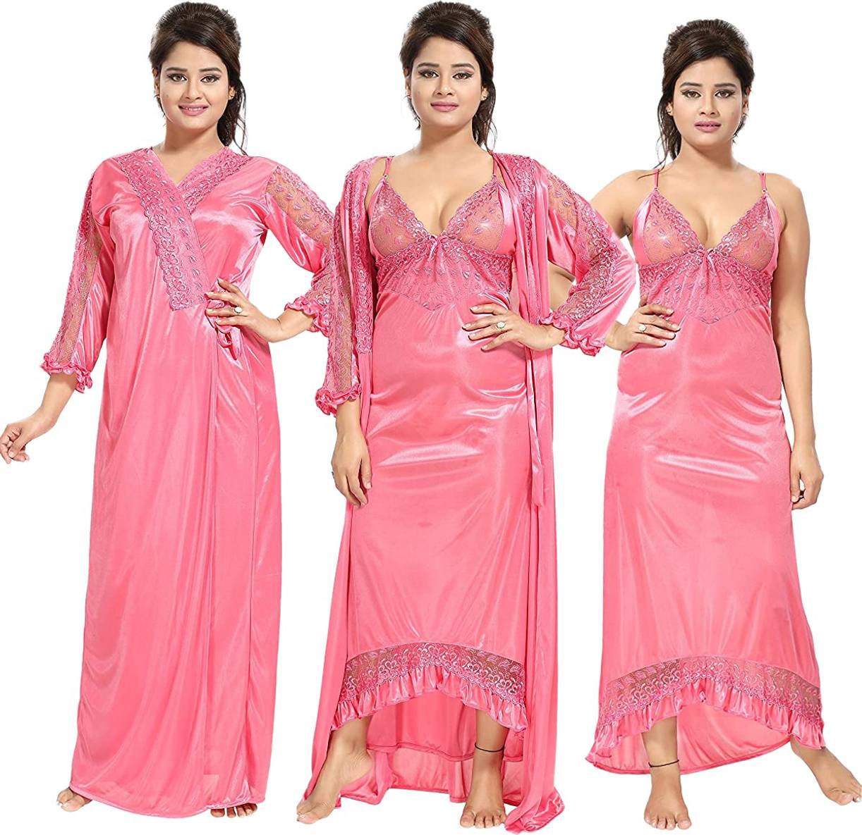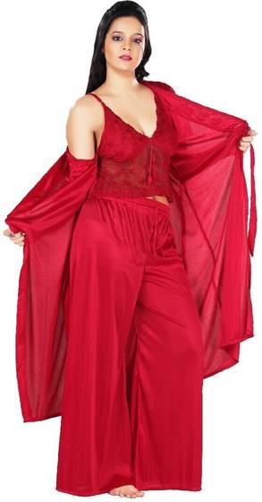 Featuring a elegant robe, this women’s nighty can provide enhanced coverage. This robe also boasts delicate lace embellishments that exude sophistication and style. Hence, it is suitable for a cosy evening at home or a luxurious night's sleep.