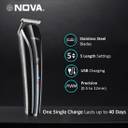 NOVA 1073-00 USB Trimmer 60 min Runtime 5 Length Settings (Black, Grey)