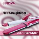 NOVA 3 in 1 Hair Styler -Curler, Crimper NHS 806 Hair Straightener (White, Pink)