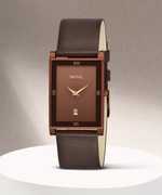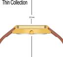 ? Dial & Case: Rectangular golden dial with a sleek 8mm thin case and a 31mm case diameter, offering a modern and sophisticated look.