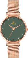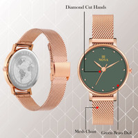 Sporting diamond-cut hands, this watch offers a precise and polished finish that enhances the dial’s brass base. Thanks to the slim chain strap crafted from stainless steel, it provides both resilience and comfort. Boasting a mesh design, the strap not only adds texture but also allows easy airflow, ensuring a light fit on the wrist. Courtesy of the brass case and bezel, this watch carries a touch of strength while complementing its refined appearance. The water-resistant nature adds practicality, making it suitable for routine wear.