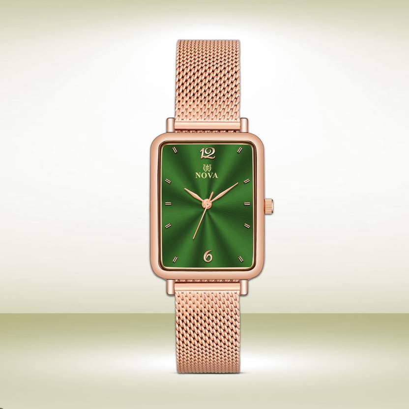 Luxury Emerald Green Dial Watch with Durable Mesh Steel Chain for Women