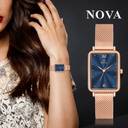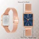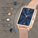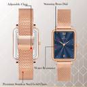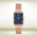 Luxury Blue Brass Dial Watch with Durable Steel Mesh Chain for Women