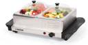 2 buffet serving stations (1.4L each), can be used as a hot plate, heats in seconds and maintains heat, hot plate no need to use water, stays cool handle. 120 watts, acrylic lids, keeps food hot and fresh for hours. 1 year official warranty from genuine customer care. nova original products. model no.: NMS 2502 2S. PROFESSIONAL HOT PLATE If 1.4 liter containers are not enough for you, or you want to heat your tea or dishes, you can remove the steel frame and the containers and make use of it as a hot plate. Keeps food fresh and hot in your own containers and server hot(use as serving dish). You can also place it on the dining table or kitchen slab.