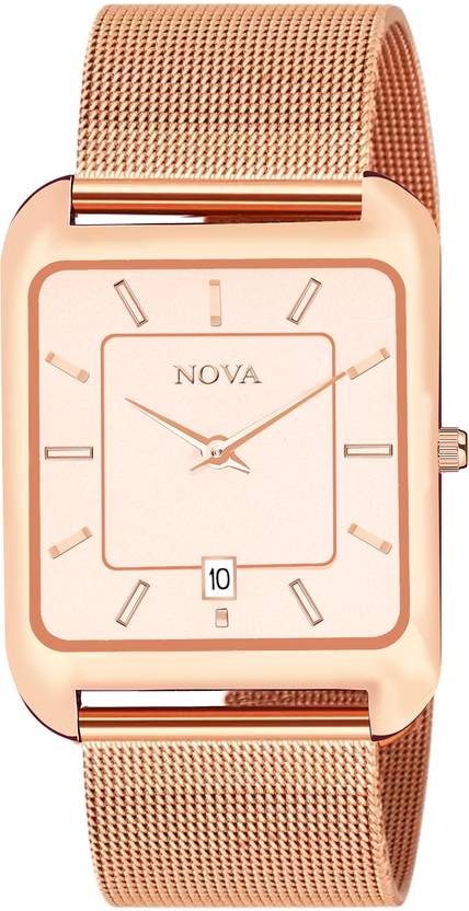 NOVA Rosegold Chain Watch Rosegold Date Rectangle Thin Chain Watch Analog Watch - For Men