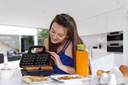Make healthy waffles in this appliance, thanks to its non-stick Teflon sandwich plates. It's also easy to clean.