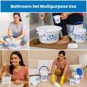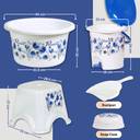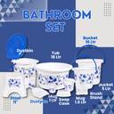We Design This flower printed bathroom set, made out of long lasting durable and unbreakable plastic to add beauty to your home.A complete heavy duty, Balti 16.0 Ltr, Plastic Tub 18.0 Ltr, Small Balti 5.0 Ltr, Pedal Dustbin 7.0 Ltr with Lid, 2 pcs of Mug Big and small, Soap Dish, Comfort Stool, Cutlery Stand and dustpan combo set