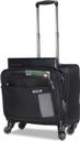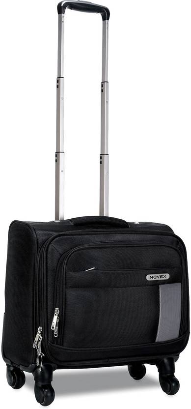 Novex Black Overnighter Laptop Trolley Luggage is made up of premium quality polyester material. This perfect cabin luggage is a best pick for a overnight business trip and have a padded laptop sleeve which fits in a laptop upto 15.6 inches. It is very sturdy and durable luggage with 4 wheel trolley system and comes with 2 spacious compartment and 1 front panel pocket ensuring you can conveniently stack and store not just your essentials but much more. The 4 wheel trolley facility helps you to easily pull the overnighter along without you having to lift and carry it.