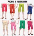 This is a Girls Trendy Polka Dot Printed Pure Cotton Capri (Pack of 4). It is made up of high-quality rich 100% cotton fabric for long-lasting quality. In this, we have used 100% cotton yarn and soft flow dyeing with bio-wash for long-lasting quality. This has a wide range of colors manufactured from the most experienced hands with a lot of care. This is suitable for all kinds of formal as well as casual occasions.
