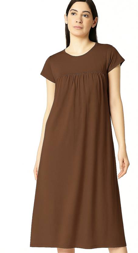 This is in timeless style with our Women’s Solid Night Dress, thoughtfully designed for graceful comfort and effortless elegance. Featuring a mid-calf length and a delicately gathered empire waistline, soft, breathable fabric, this solid-colored nightdress offers a gentle touch against the skin, ensuring all-night comfort. this nightdress promises comfort without compromising on style.
