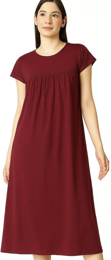 This is in timeless style with our Women’s Solid Night Dress, thoughtfully designed for graceful comfort and effortless elegance. Featuring a mid-calf length and a delicately gathered empire waistline, soft, breathable fabric, this solid-colored nightdress offers a gentle touch against the skin, ensuring all-night comfort. this nightdress promises comfort without compromising on style.