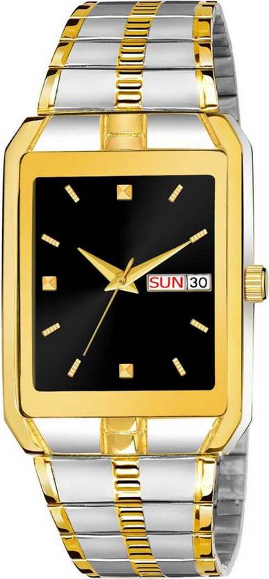 NS-Gold And Black Square Dial Day and Date Boy's & Men's