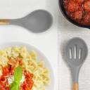 SOKT Silicone Spatula Set of 3, Spatula Set with Wooden Handle for Cooking Kitchen Tool Set (Grey, Spatula)