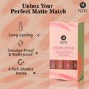 Product Highlights | - NOY Pure Matte Nude Colours Liquid Lipstick Highly Pigmented Modern Shades, Quantity -4 Pieces, Capacity 4ml Per Pcs In High Premium Plastic Container, 100% Cruelty & Toxic-Free Ingredients, Long Lasting-Upto 15 Hours, High Sensational Trendy & Classic Nude Colors With Vitamin E Rich Ingredients, Vibrant Colors, 100% Waterproof, Kiss-Proof, Non Transfering On A Clothing, Drinking, Talking, Eating, Sleeping Enjoy Every Moment Hussle Free, No Fading All Day, Non Sticky & Smudge-Proof & Live Confidentaly Without Worry Super Smooth Western Matty Finish For Classic Women And Complete Full Coverage In A Single Stroke Matte Lip Color, Easy To Remove With Any Makeup Remover "Lightweight, Moisturizing-Hydrating-Breathable And Comfortable On All Types Of Lip"