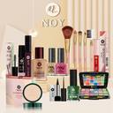 Waterproof Glamour: Dive into waterproof glamour with our NOY Makeup Kit designed for women. This collection features a range of waterproof products, from smudge-proof eyeliners to long-lasting mascaras and lip colors. Whether you're enjoying a poolside party or facing rainy weather, this kit ensures your makeup stays flawless and intact. Embrace the confidence of waterproof beauty and make a splash with this glamorous NOY Makeup Kit.Unlock your beauty potential with this comprehensive NOY Makeup Kit set, featuring a selection of must-have items like compact powder, black mascara, black kajal, a set of five high-performance makeup brushes, skin color foundation, an 18-color eyeshadow kit, red sindoor,Metalic Green Eyeliner, Nude Nail Polish, Light Pink Nail Polish, Coffee Wine Liquid Listick.