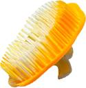 brush Stimulating scalp massager. Plastic with finger ring. Pre-assorted colors great for massaging hair and body durable bristles that are soft and gentle slides onto finger for easy grip