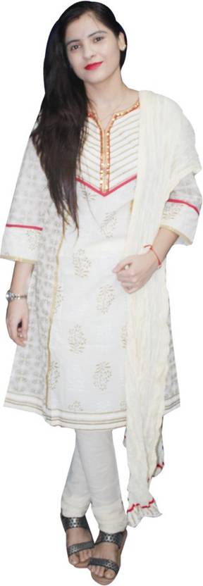 Women Cotton Blend Kurta Churidar Dupatta Set