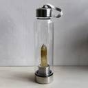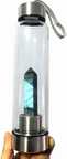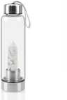 The Crystal Bottle Elixir Water Bottle is a captivating fusion of style and functionality, meticulously crafted to transform your hydration routine into a holistic and rejuvenating experience. With a generous 16-ounce capacity, this water bottle is more than just a vessel; it's a wellness companion designed to elevate your well-being. At the heart of its design is a natural Amethyst gemstone, securely nestled in a dedicated compartment within the bottle. Amethyst, renowned for its calming and purifying qualities, transforms your water into a crystal elixir, infusing it with subtle energies believed to enhance mental clarity, spiritual awareness, and overall balance. The bottle's design is a harmonious marriage of elegance and modern aesthetics. The Amethyst gemstone, a symbol of tranquility and positive energy is showcased within the bottle, creating a visually striking accessory. The crystal is thoughtfully protected to ensure its integrity and purity, allowing you to experience its benefits without direct contact. Constructed from durable materials, the Crystal Bottle is built to withstand daily use. The crystal compartment is resilient, maintaining its allure over time, while the entire bottle is designed for convenience and longevity. Portability is a key feature, with the 16-ounce size making it an ideal companion for any setting. Whether at home, in the office, or on the go, the Crystal Bottle fits seamlessly into your lifestyle. Its compact design allows it to easily slide into most cup holders, ensuring you stay hydrated wherever your day takes you. Maintaining the Crystal Bottle is effortless, thanks to its easy disassembly for thorough cleaning. Both the crystal compartment and the bottle itself can be washed with ease, promoting a hygienic and enjoyable hydration experience.