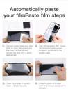 Clean the screen of the device with the provided cleaning cloth and turn the sticky side of the tempered Glass towards the display aligning it to edges. Proceed peeling the film and applying glass simultaneouly till the total application.