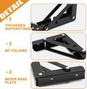- Folding shelf brackets are made of durable stainless steel. Their smooth surface allows for effortless folding, saving space and keeping things tidy Shelf Brackets Heavy Duty:These brackets support up to 150 lbs (68 kg) and feature a robust triangular design made from high-quality steel with a baked black finish for strength and reliability, - Easy to Lock and Collapse:The shelf brackets are user-friendly. They unfold with a gentle pull and fold up easily with a press, minimizing space and avoiding obstacles., - Suited for Various Scenarios:The versatile folding shelf can be used in many places—kitchen walls, BBQ carts, under TV walls, and outdoors—wherever you need extra space., - Product Service:For any questions, contact us for support. We ensure rigorous quality checks before shipping. Our customer service team is available to resolve any issues promptly.