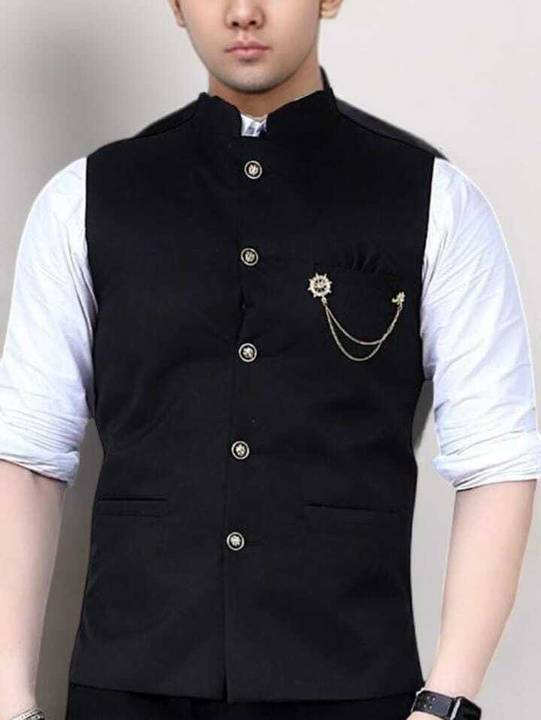 Impress everyone with your amazing fashion sense by donning this Nehru jacket. Fashioned from cotton blend, this jacket is designed to provide you sheer comfort and will ensure a perfect fit. Wear this jacket over a shirt with chinos for a smart look.