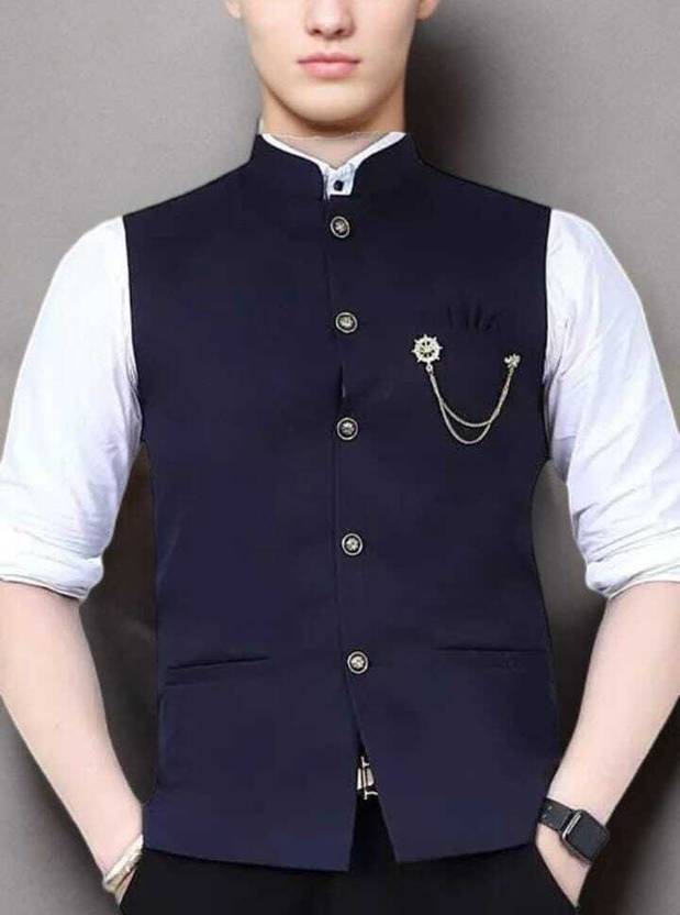 Impress everyone with your amazing fashion sense by donning this Nehru jacket. Fashioned from cotton blend, this jacket is designed to provide you sheer comfort and will ensure a perfect fit. Wear this jacket over a shirt with chinos for a smart look.
