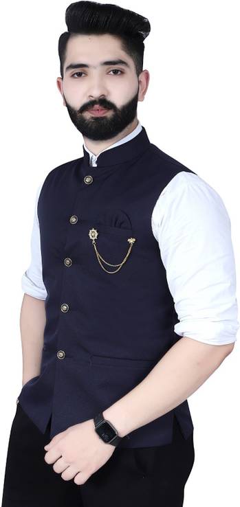 Impress everyone with your amazing fashion sense by donning this Nehru jacket. Fashioned from cotton blend, this jacket is designed to provide you sheer comfort and will ensure a perfect fit. Wear this jacket over a shirt with chinos for a smart look.
