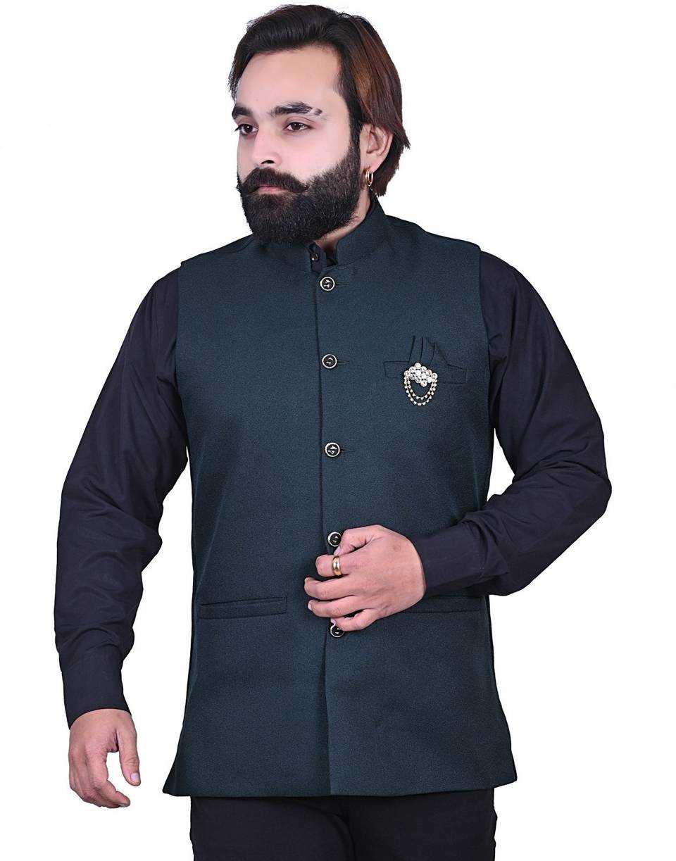 Impress everyone with your amazing fashion sense by donning this Nehru jacket. Fashioned from cotton blend, this jacket is designed to provide you sheer comfort and will ensure a perfect fit. Wear this jacket over a shirt with chinos for a smart look.