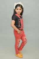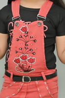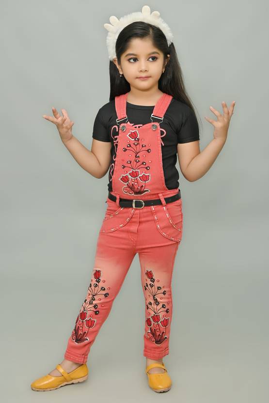NTD FASHION Dungaree For Baby Girls Party Embroidered Denim (Red, Pack of 1)