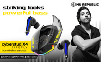 Nu Republic Cyberstud X4 TWS Earbud with 72hr Playtime, ANC + ENC Quad Mics & XBass® Bluetooth (Black, True Wireless)