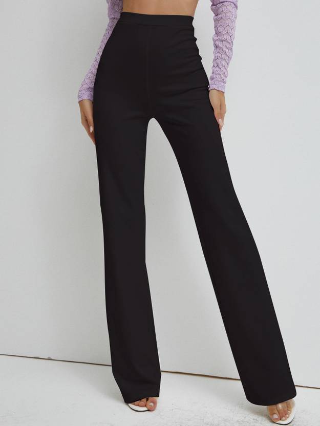 Women Regular Fit Black Viscose Rayon Trousers