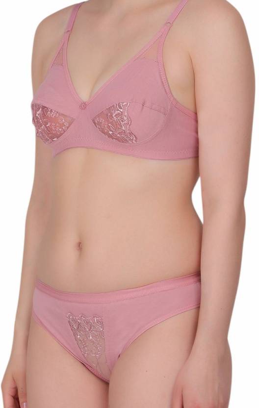 Feel confident and comfortable every day with this premium bra and panty set for women, crafted from a soft cotton blend fabric. The non-padded, wire-free bra ensures gentle support while maintaining a natural shape. The lace detailing under the bust adds a chic and elegant touch to your innerwear collection. The matching mid-rise panty provides a smooth fit and all-day comfort. Designed for daily wear, this lingerie set combines style, support, and softness – making it a must-have in your wardrobe.