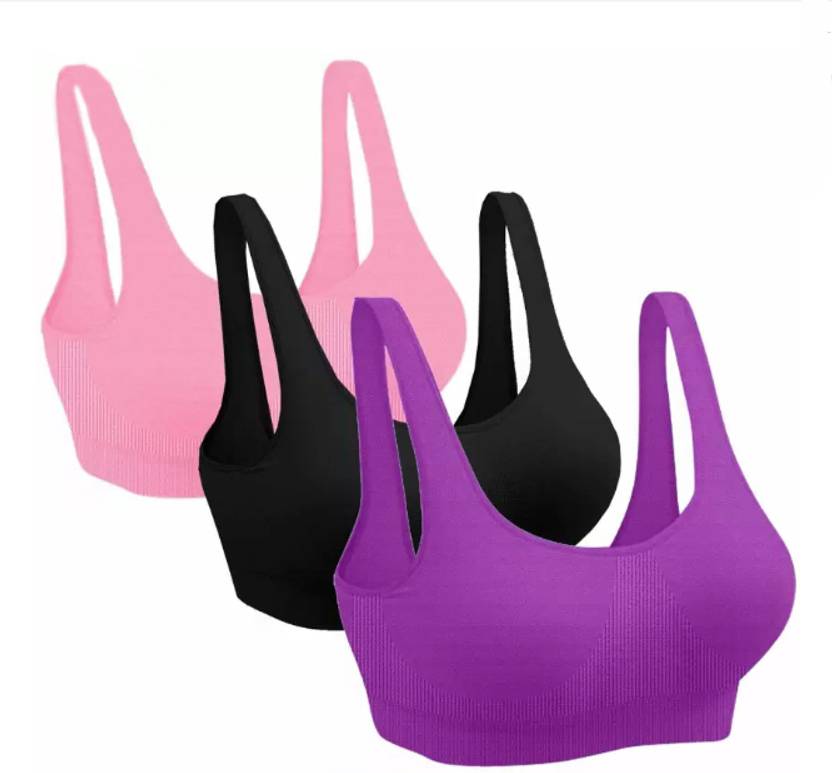 Pack of 3 Girls Stretchable Cotton sports non padded seamless sports gym bra