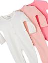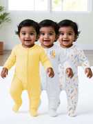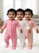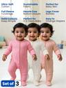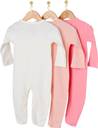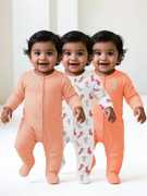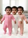 Nuego Fashion introduced a Set of 3 Cotton Sleepsuits for Baby Girls for 0-18 months. Please select the perfect size for your child by referring to the size list provided above. Ensure you choose the size that best matches your child's measurements for a comfortable and stylish fit. These baby bodysuits offer the perfect blend of comfort, style, and practicality for your little one. Crafted from sustainable cotton, they ensure a soft, breathable, and baby skin-friendly experience that is gentle on your baby's delicate skin. Each newborn baby rompers bodysuit set features an adorable cute print or solid soft texture, adding a charming touch to your baby's outfit, while the round neck design makes dressing and undressing a breeze without causing any discomfort. The full sleeves provide extra coverage and warmth, making them perfect for winter season, cooler days or air-conditioned environments, while the lightweight, breathable fabric helps maintain proper airflow to prevent overheating and keep your baby cool and dry. Hypoallergenic materials minimize the risk of irritation, ensuring a safe and comfortable fit for everyday wear, whether at playtime, naptime, or a cozy outing. Designed with a snug yet flexible fit, these bodysuits rompers for baby allow for freedom of movement while accommodating your baby's growth. Machine washable and tumble dry-friendly, they offer easy care and long-lasting durability, making them the perfect addition to any newborn's wardrobe or an ideal gift for new parents. Whether you're looking for baby dresses in 0-3 months, romper for new born baby, baby romper 3-6 month, winter romper for baby boy, or onesies for 6-9 months, body suit for new born baby, we've got you covered. You can find rompers for your little stars for sizes 0-3 months, 3-6 months, 6-9 months, 9-12 months, 12-18 months baby dress keeping them warm and cozy through all their growth stages.