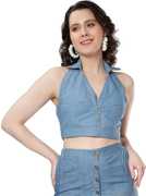NUEVOSDAMAS Casual Solid Women Light Blue Top