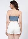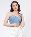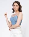 Featuring a slim fit denim enzyme wash corest crop top, designed with perfection to keep you sync with the latest trend. Having sweetheart neckline, smocking work at back, Padded & Invisible Straps contrast color thread detailing making this piece more beautiful. You can elevate the look with heels or with a pair of sneakers. If you’re looking to go comfy, it can be worn under shrug, shirt.
