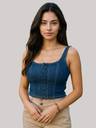 Featuring a slim fit denim bustier top, designed with perfection to keep you sync with the latest trend. Having U-Shape neckline, smocking at back,contrast thread detailing which makes this piece more beautiful. You can elevate the look with heels or with a pair of sneakers.