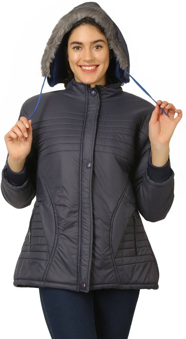 Black solid lightweight puffer jacket, has a mock collar full sleeves, detachable Faux fur hood, zipper pocket opening at front. Inside it has sherpa lining to keeps you warm.This A-line jacket will be a thumbs up to your winter wardrobe. Pair it with jeans or a dress for any occasion .