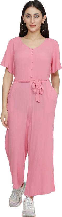 This NuevosDamas exquisite jumpsuit will have you falling in love with your looks all over again. Designed with base fabrication of Rayon Crepe, adorned with buttons around the front for easy opening. Crafted with sleeves and round neck, making it comfortable to wear for all bodytypes. Rendered with two pockets below the defined waist , a concealed zip at the back and a waistband. The jumpsuit feels excessisvley soft to the wearer. This is an incredible casual look, style with your hair pulled back and some minimal jewelry.