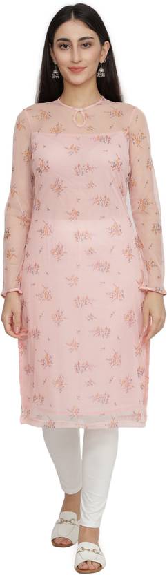 This Printed Pink Poly Net Kurta will surely make people compliment your look in thi summer season. This Straight Kurta features beautiful floral psychedelic Prints and has a exquisite key-hole neckline. Providing you with comfortable cotton lining inside, this kurta makes your appearance graceful. Finish off the look with classic ear pins, an embellished clutch and peep-toe heels for the festive gatherings.