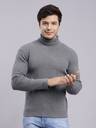 NUEVOSPORTA Solid High Neck Casual Men Grey Sweater