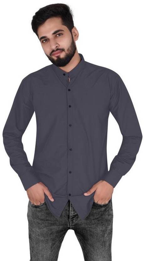 NuJiΒ Men Slim Fit Solid Mandarin Collar Casual Shirt