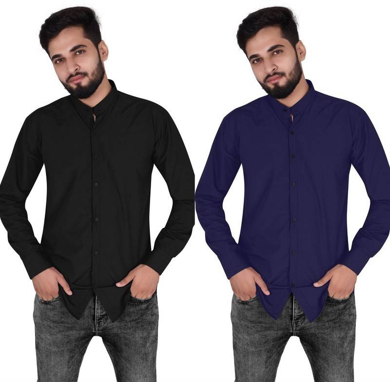 Two pure Chinese collar shirt Product Description :- NuJi presenting here the latest designer chinese collar shirts perfectly for casual, ethnic as well as party wear. These are designed to absolute perfection, this perfect slim fit shirt in various colour looks very trendy to show & that too keeps you at easy whenever you wear this. This have exclusive designes that gives you a perfect,slim, comfortable & charming look. It immediately grabs the attention of the people around you and makes you look attractive and elegant