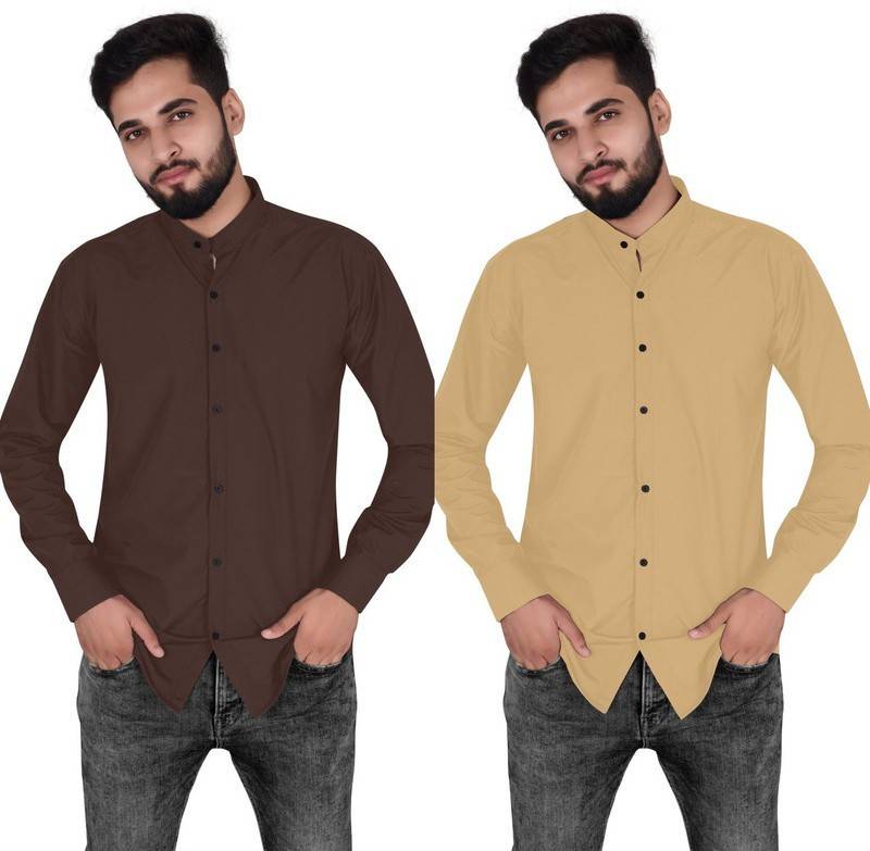 Two pure Chinese collar shirt Product Description :- NuJi presenting here the latest designer chinese collar shirts perfectly for casual, ethnic as well as party wear. These are designed to absolute perfection, this perfect slim fit shirt in various colour looks very trendy to show & that too keeps you at easy whenever you wear this. This have exclusive designes that gives you a perfect,slim, comfortable & charming look. It immediately grabs the attention of the people around you and makes you look attractive and elegant
