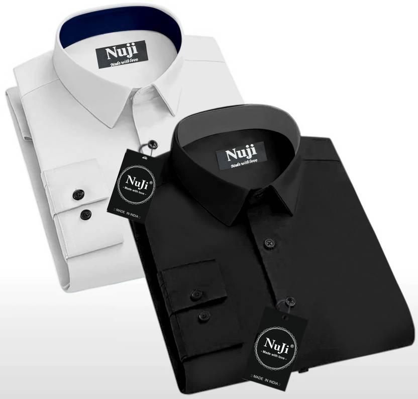 NuJi Men Regular Fit Solid Spread Collar Casual Shirt (Pack of 2)