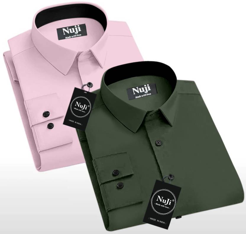 NuJi Men Solid Casual Green, Pink Shirt (Pack of 2)