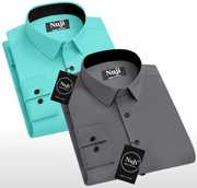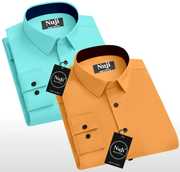 NuJi Men Regular Fit Solid Spread Collar Casual Shirt (Pack of 2)